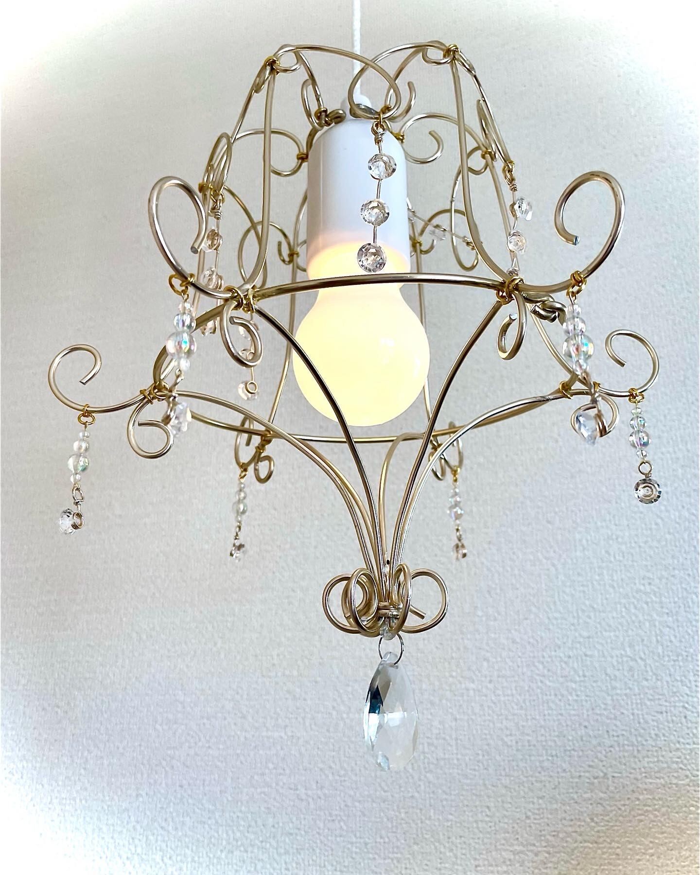 シャンパンゴールドのワイヤーとダイヤカットのアクリルチャームがアクセントに大人可愛く豪華なシャンデリアとなりました。