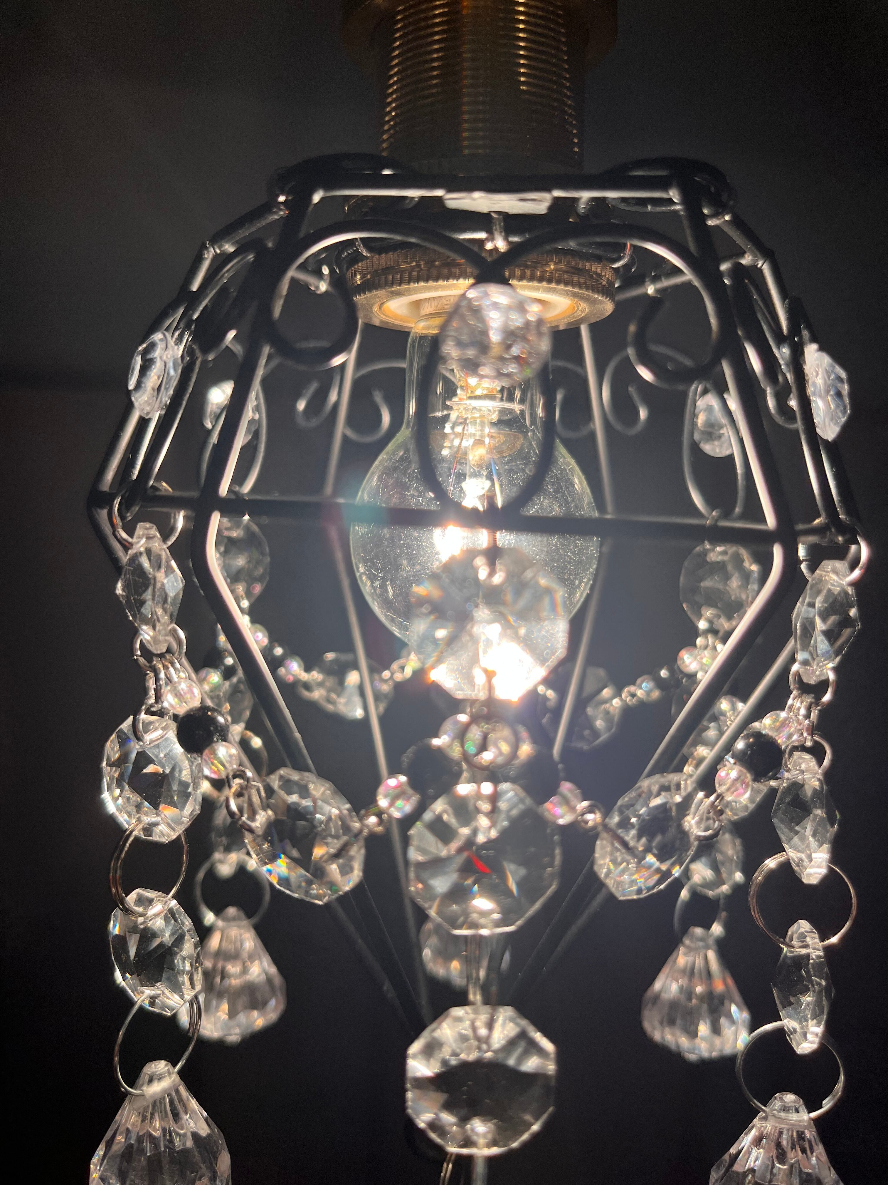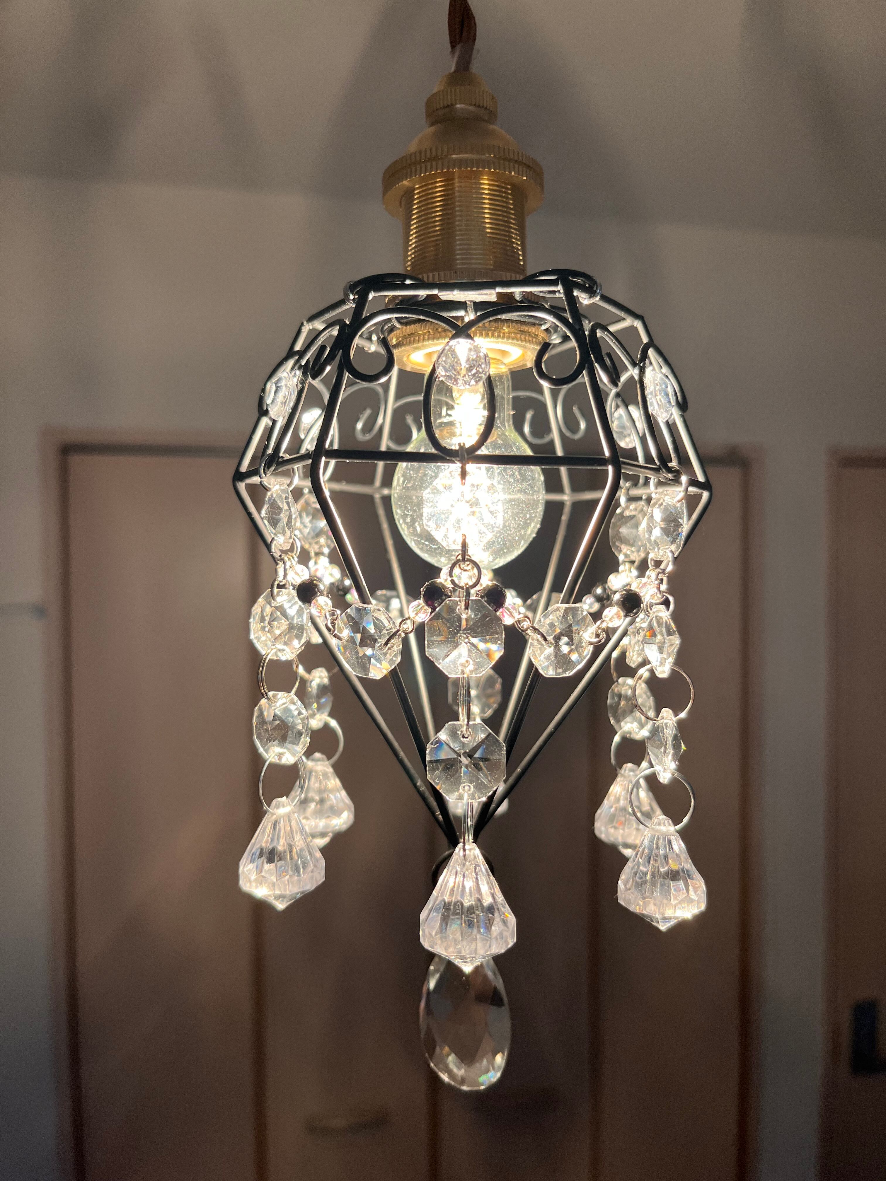 クリスタルチャームのサンキャッチャーが煌めくミニシャンデリア。