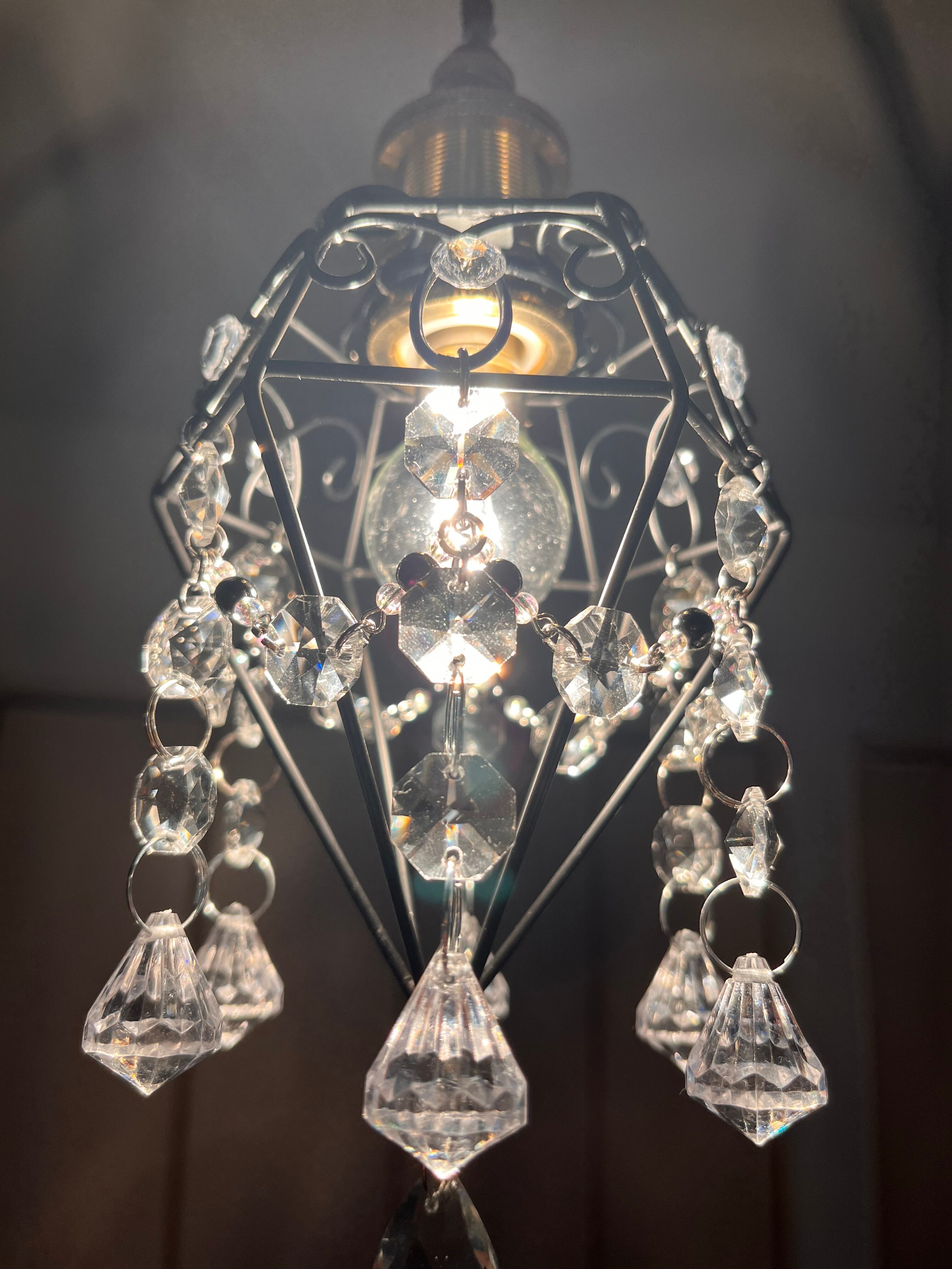 クリスタルチャームとサンキャッチャーが輝くミニシャンデリア ハンドメイド ガラスチャーム 1灯用 E17 LED対応 真鍮製電気コード付き 引っ掛けシーリング ペンダント 天井 吊り下げ 姫 プリンセス