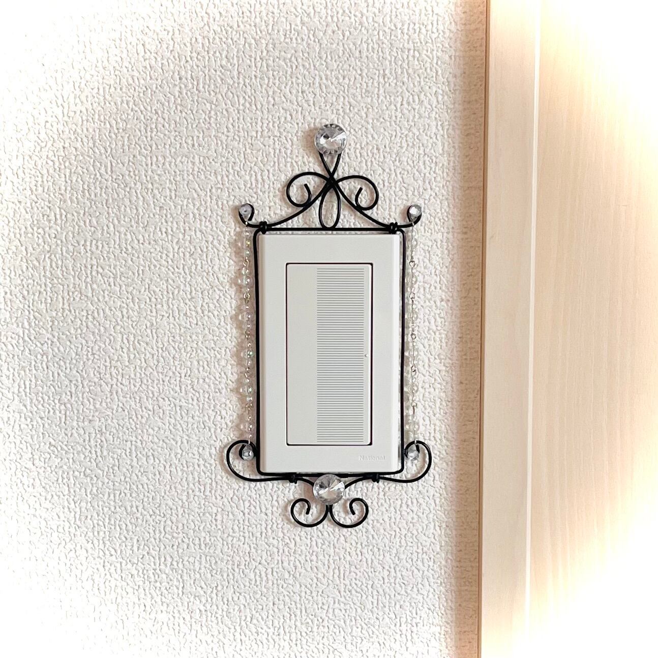 ラインストーンとオーロラビーズのシャンデリアテイストスイッチandコンセントカバーデコレーション リメイク diy雑貨 姫系 ワイヤークラフト 照明パーツ ウォールデコレーション 飾り