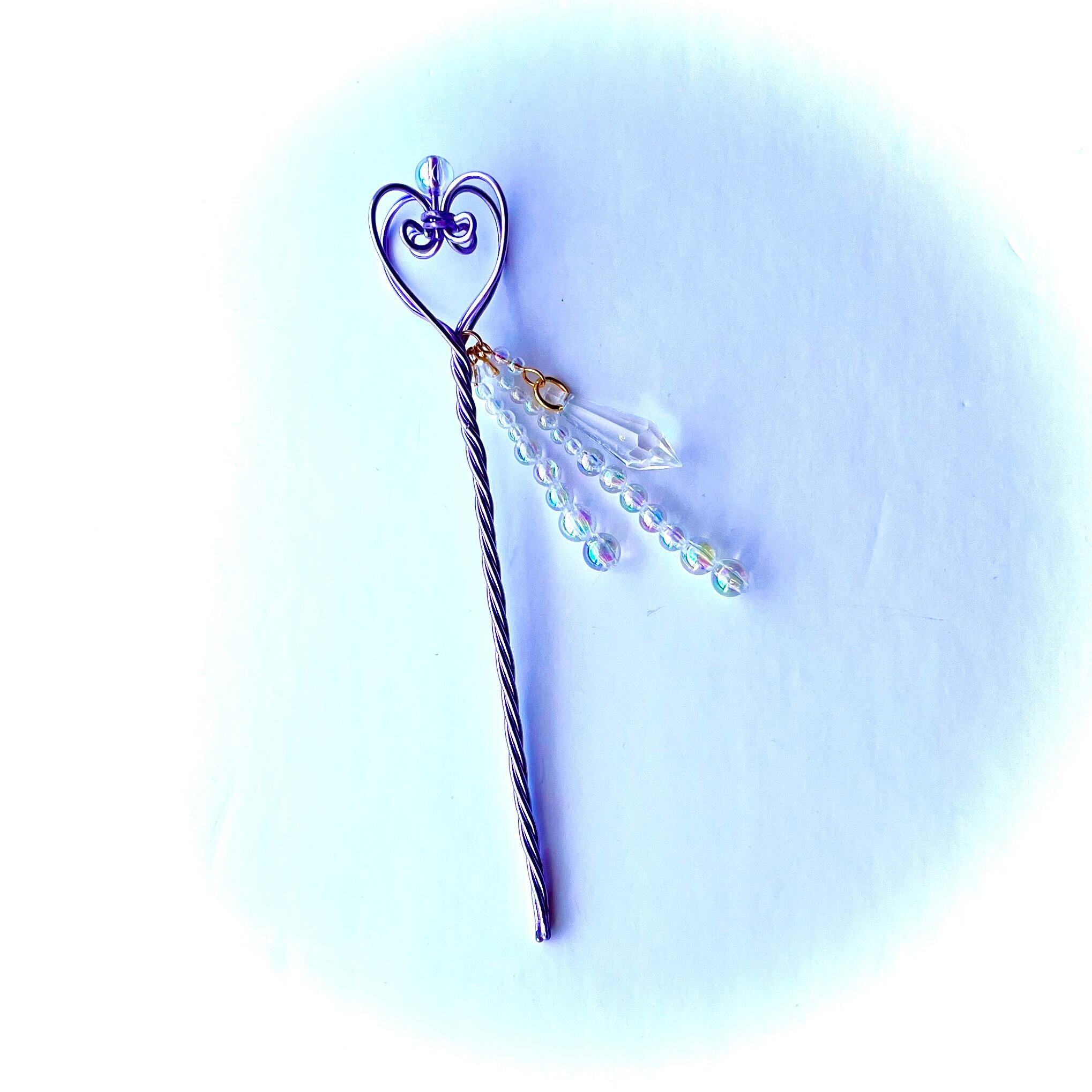 魔法のステッキみたいなヘアスティック、「オーロラビーズのビジュー付き」